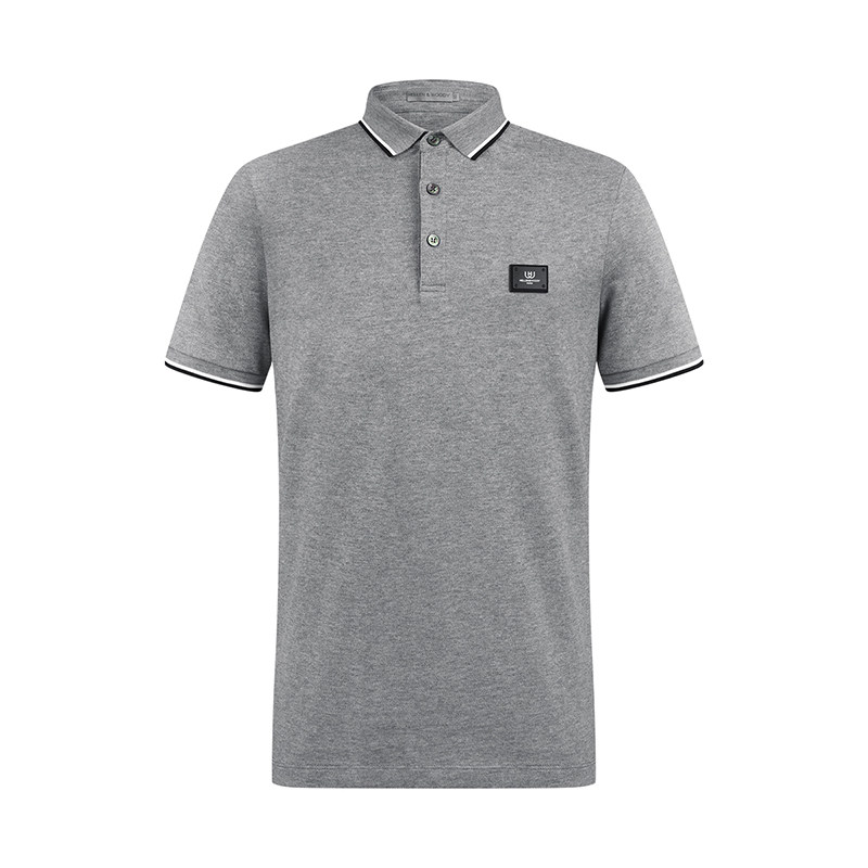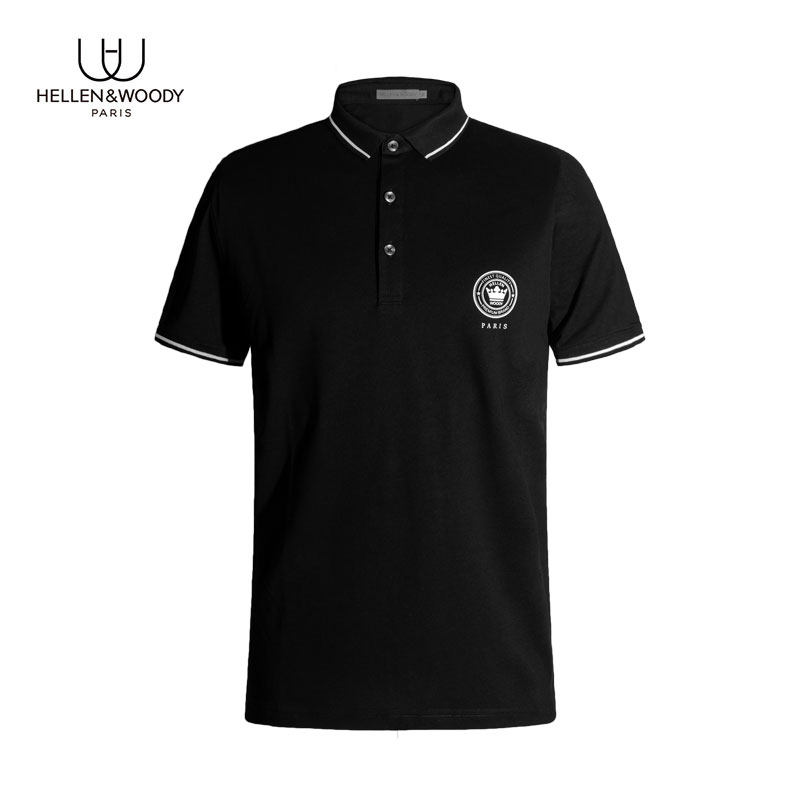 HELLEN&WOODY法国奢侈品男装夏季短袖秀珠简约修身翻领商务POLO男