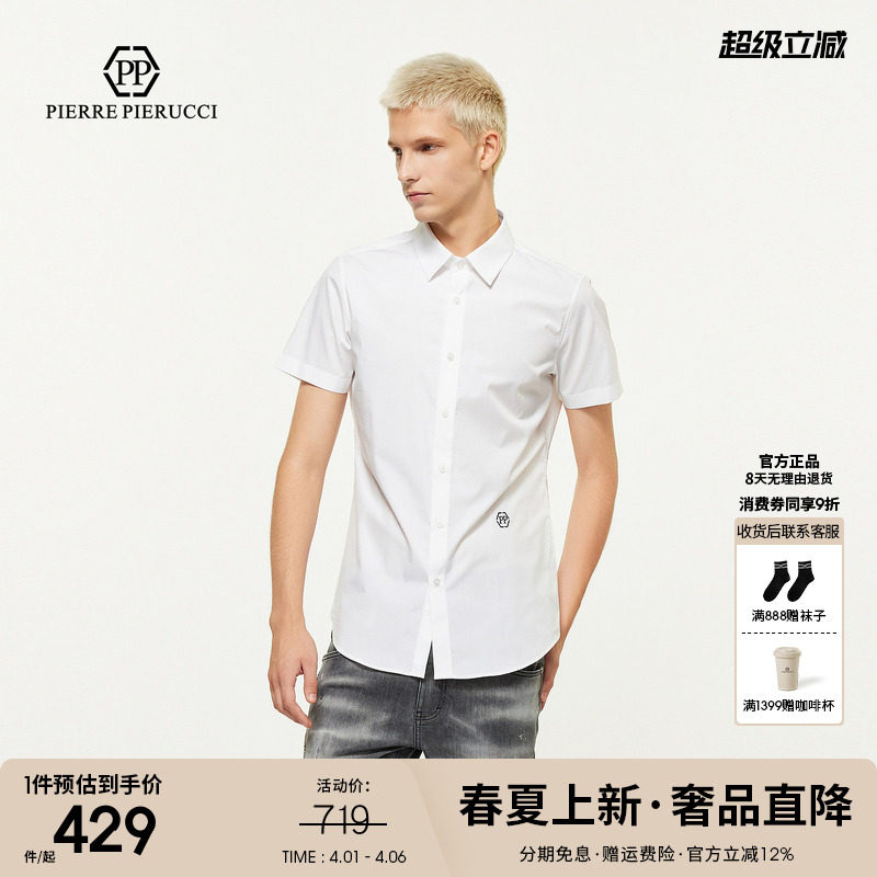 PP PIERRE PIERUCCIPP意大利奢侈品男装夏季新款字母短袖休闲衬衫