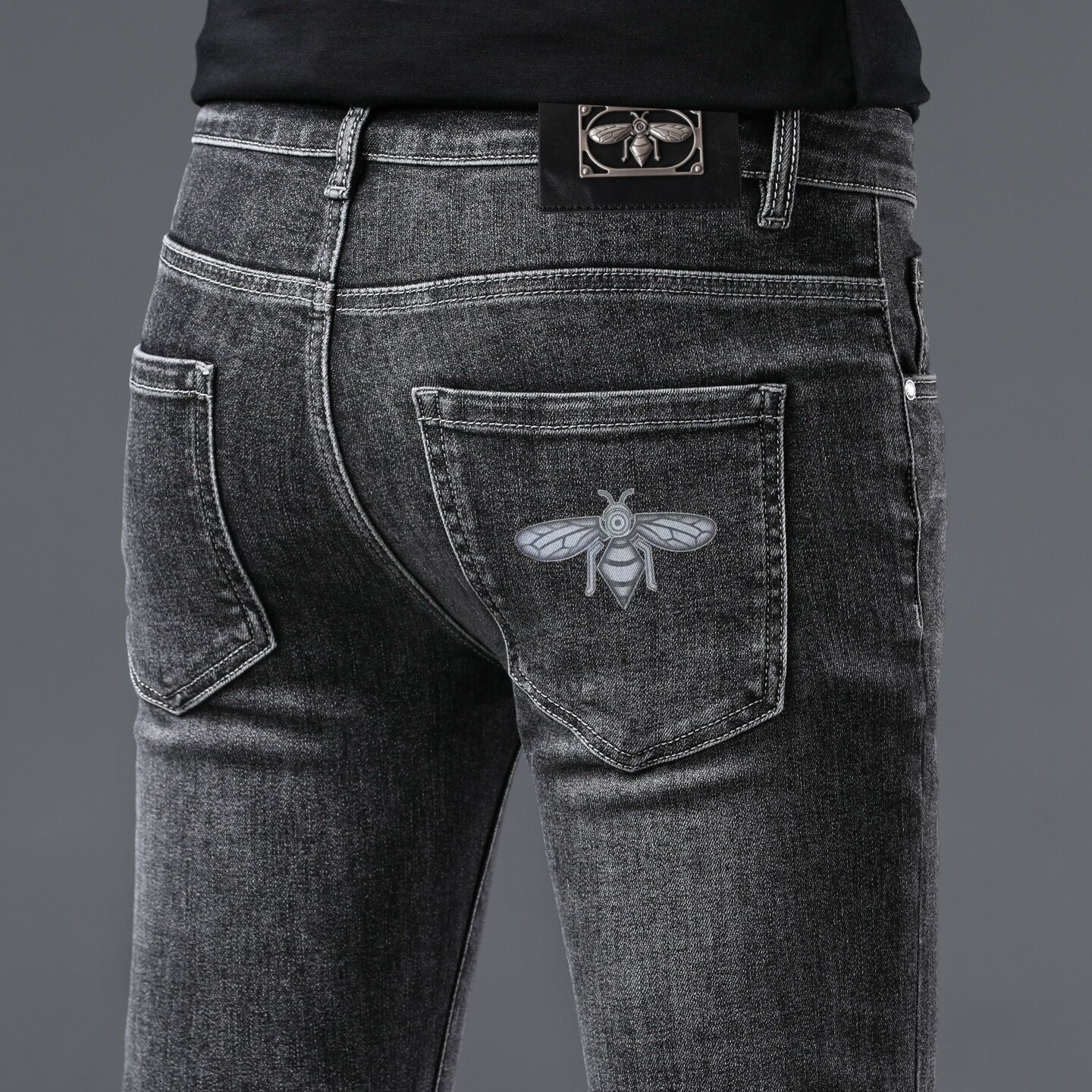 意大利进口男装高端烟灰色牛仔裤男修身小脚潮流百搭轻奢大牌裤子