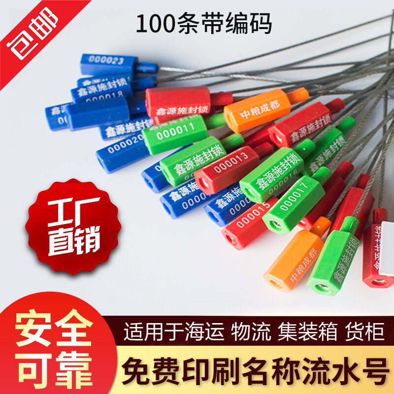 带编码钢丝封条 集装箱物流货柜车对插式高保封一次性防伪100条