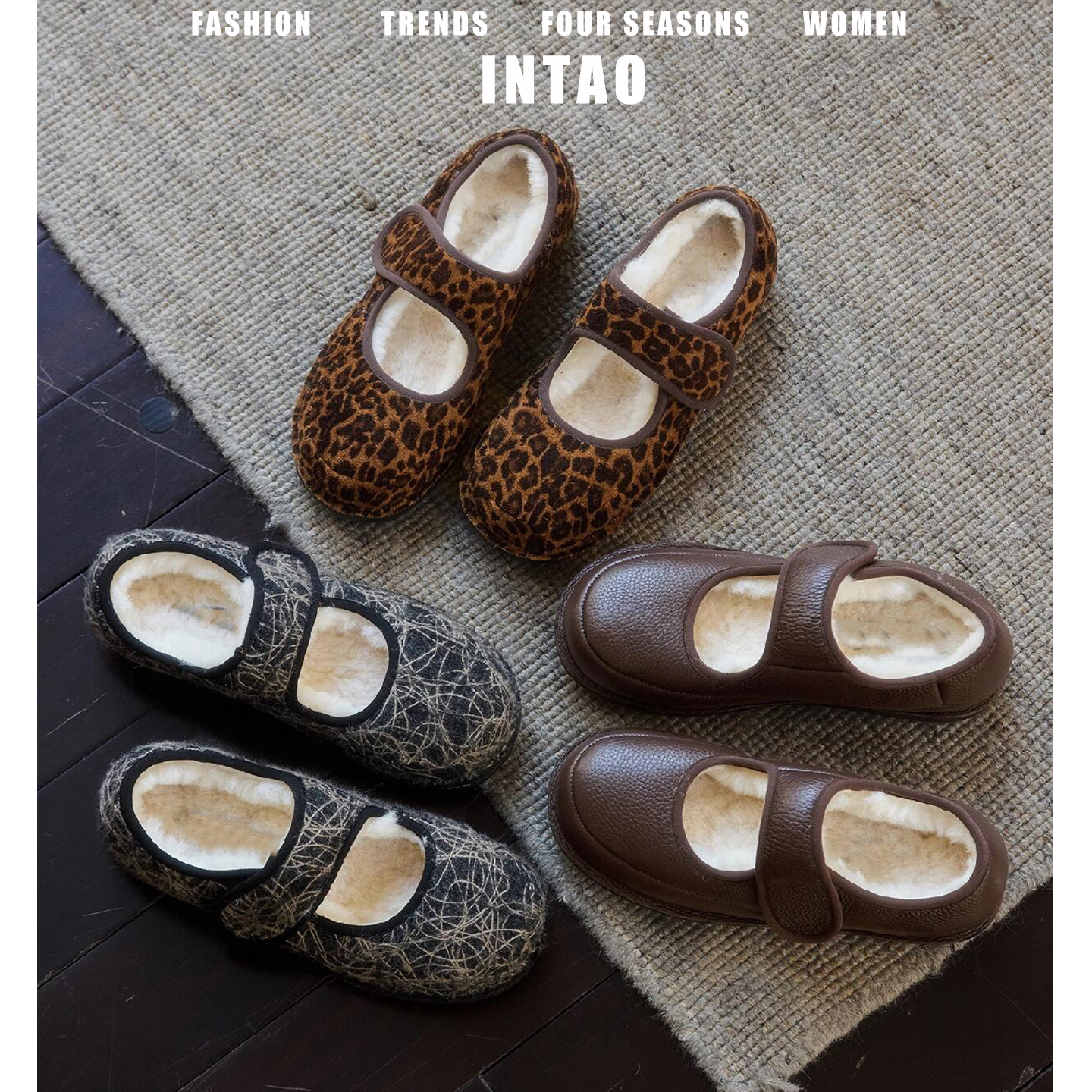 复古豹纹超火玛丽珍毛毛鞋女外穿2025冬季新款魔术贴软底豆豆棉鞋
