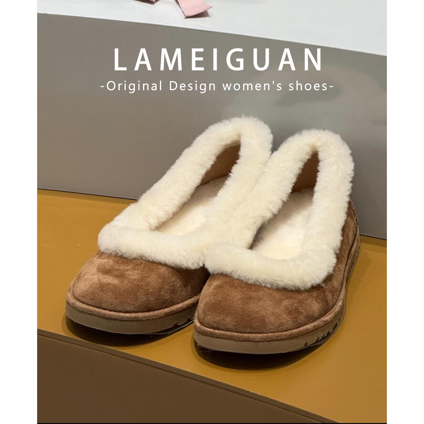 加绒保暖复古平底毛毛鞋女外穿休闲鞋2025秋冬款软底舒适豆豆棉鞋