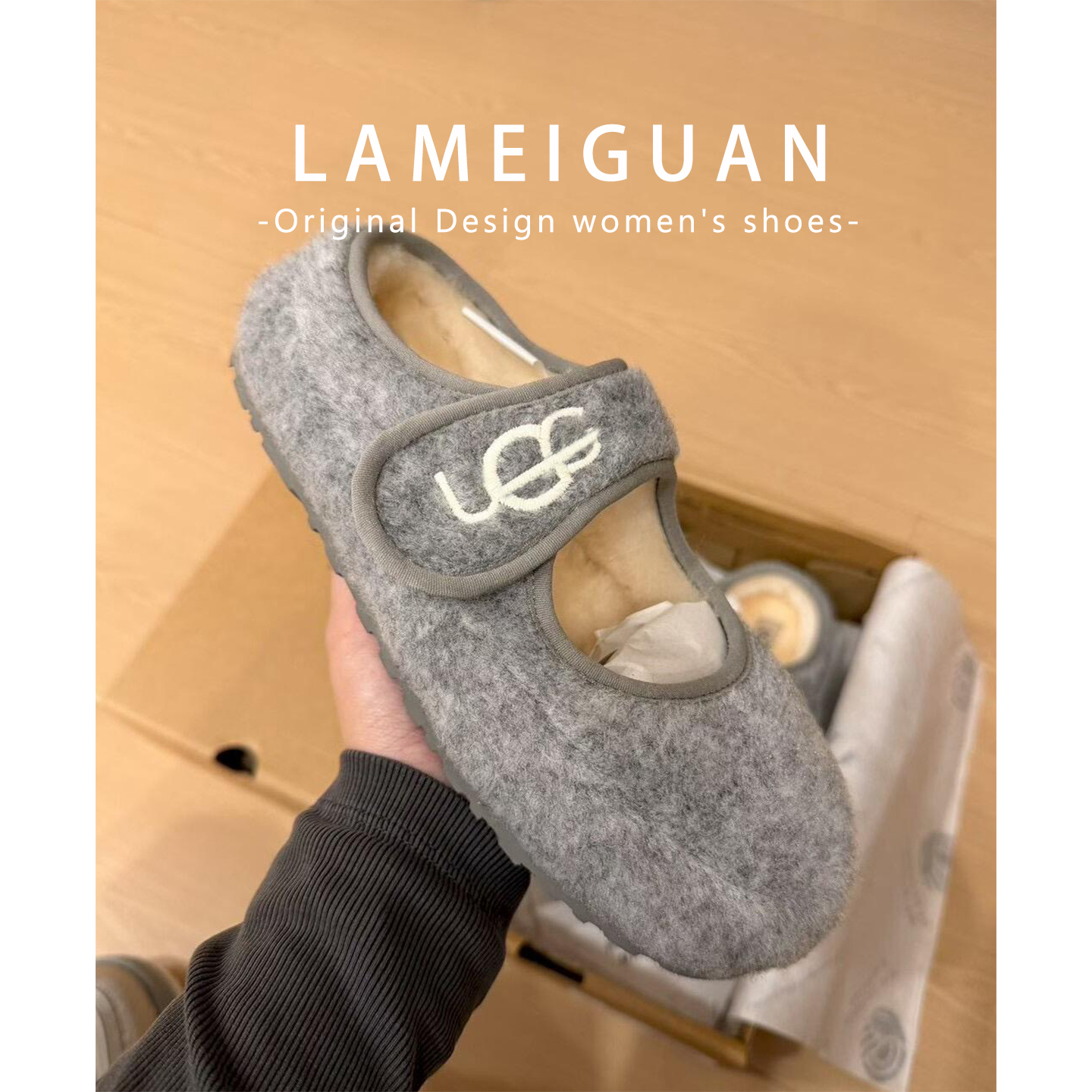 羊羔毛毛魔术贴平底豆豆棉鞋女2025年秋冬新款保暖加绒玛丽珍单鞋
