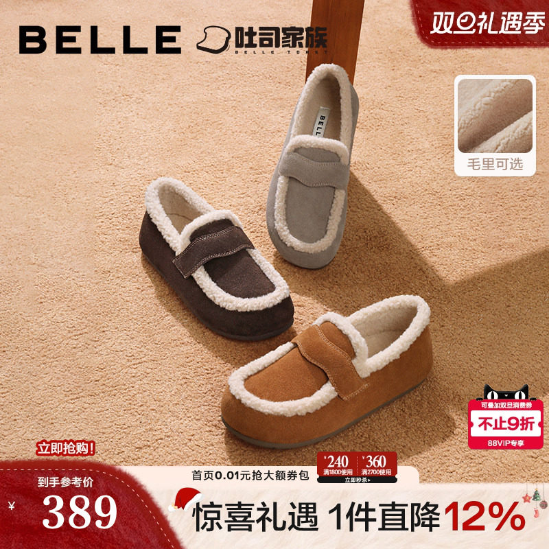 百丽吐司毛毛鞋女冬季新款勃肯雪地靴加绒乐福豆豆棉鞋D2F1DAM5