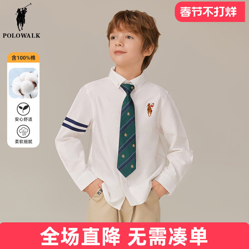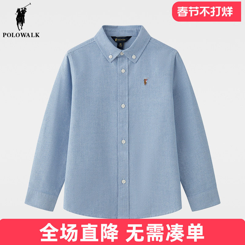 Polo walk童装 男童长袖衬衫2025春秋季新款儿童纯棉牛津纺衬衣