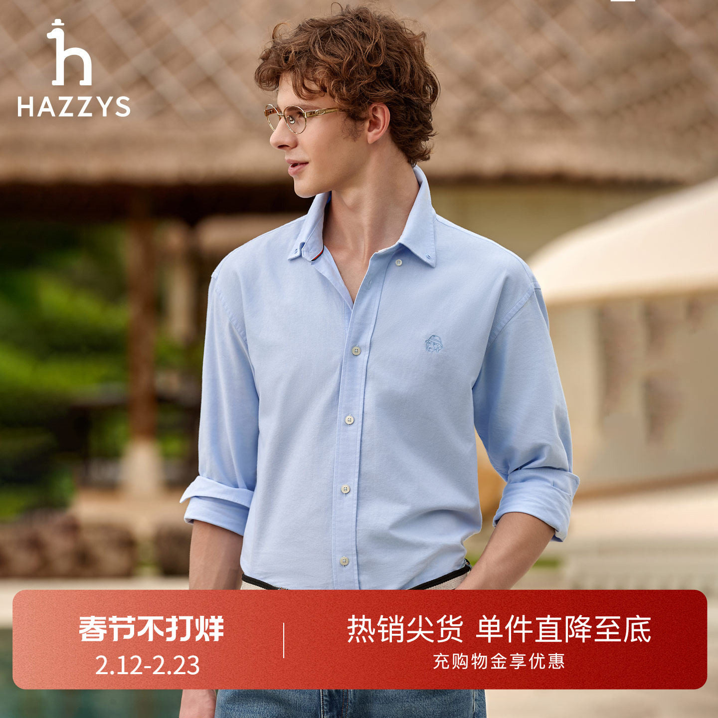 【牛津纺衬衫】Hazzys哈吉斯男士长袖衬衣春季纯棉休闲宽松白上衣