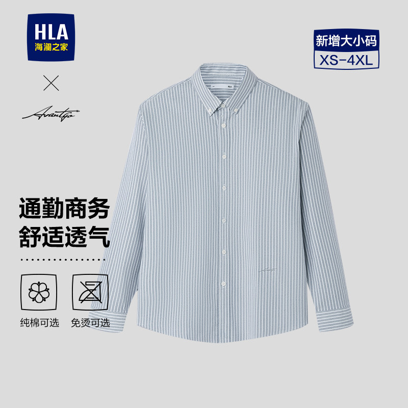 HLA/海澜之家轻商务经典系列长袖衬衫25秋新大码纯棉牛津纺衬衣男