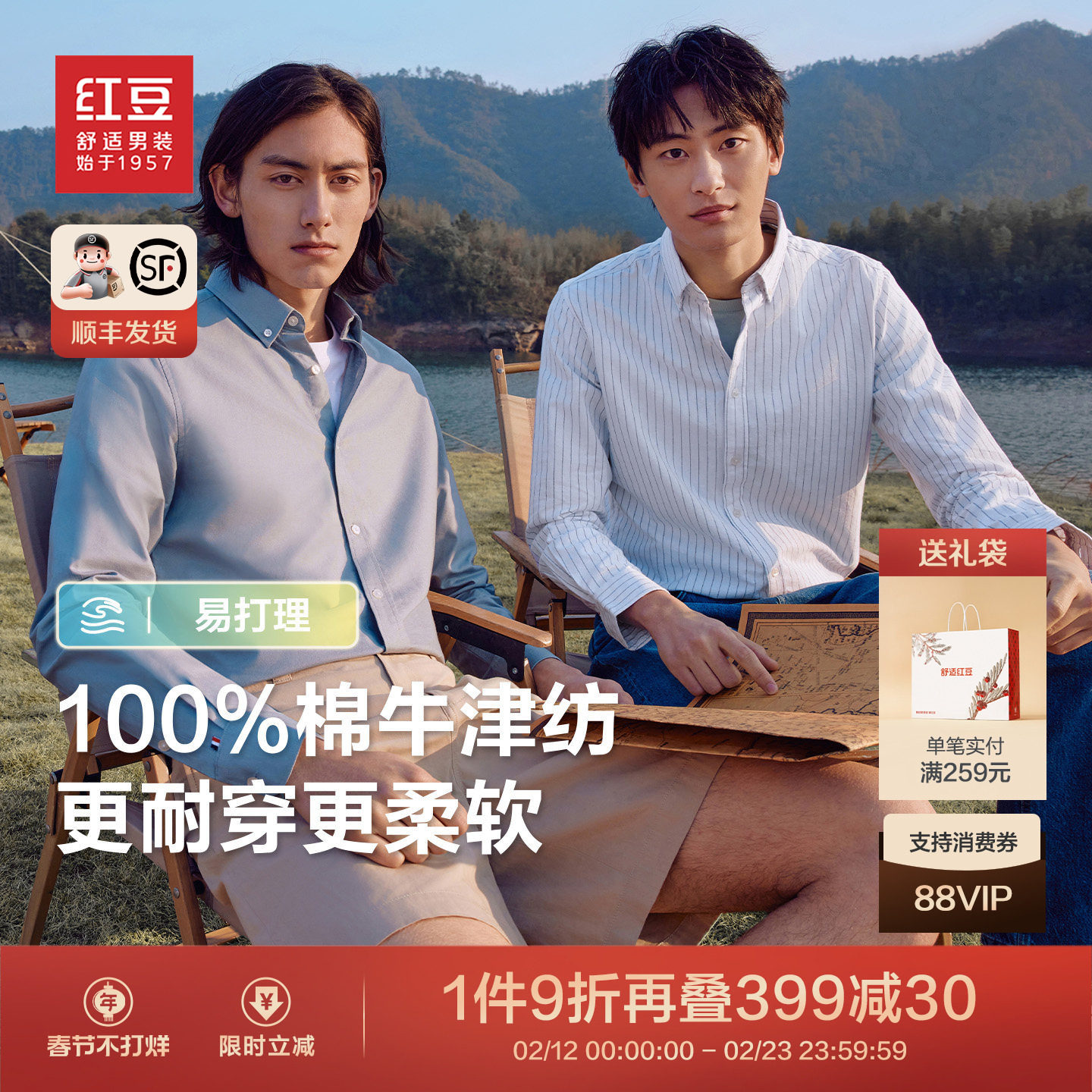 【100%纯棉】红豆牛津纺衬衫男长袖新款26春条纹休闲蓝色衬衣男士