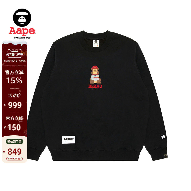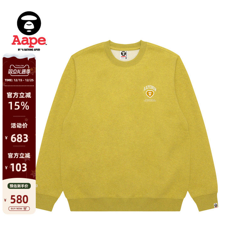 Aape旗舰店男装秋冬字母徽章老花猿人休闲薄绒圆领卫衣C376XXP