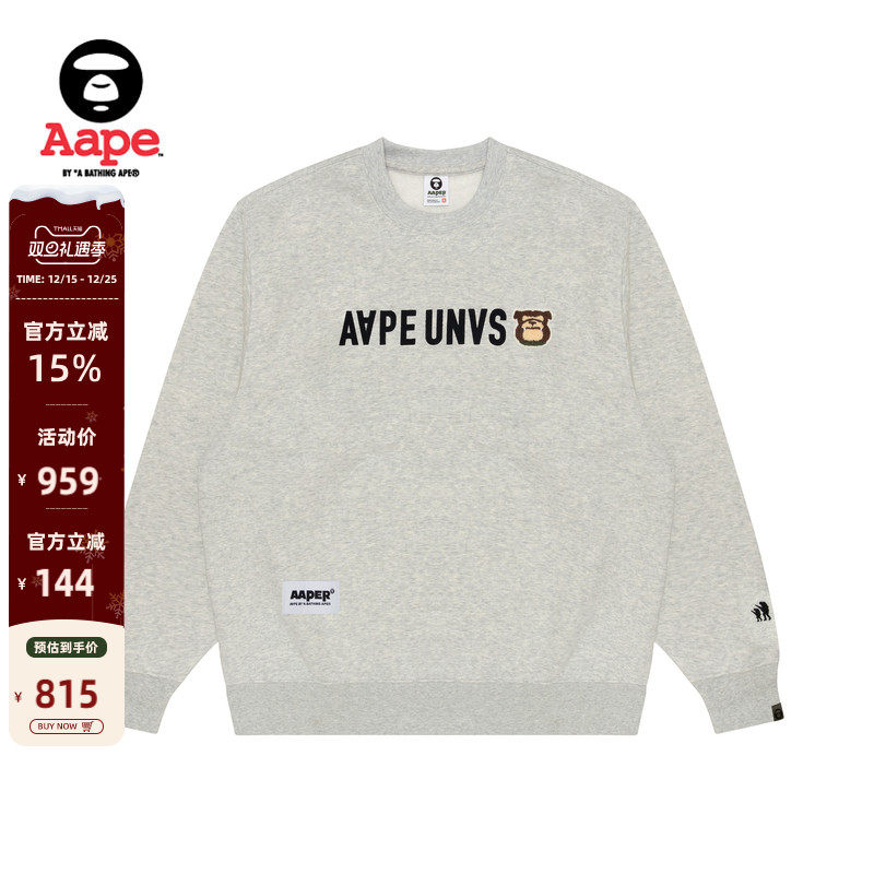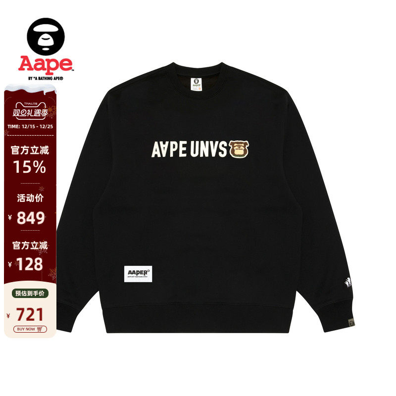 Aape旗舰店男装春秋猿人徽章字母刺绣休闲圆领卫衣B318XXN