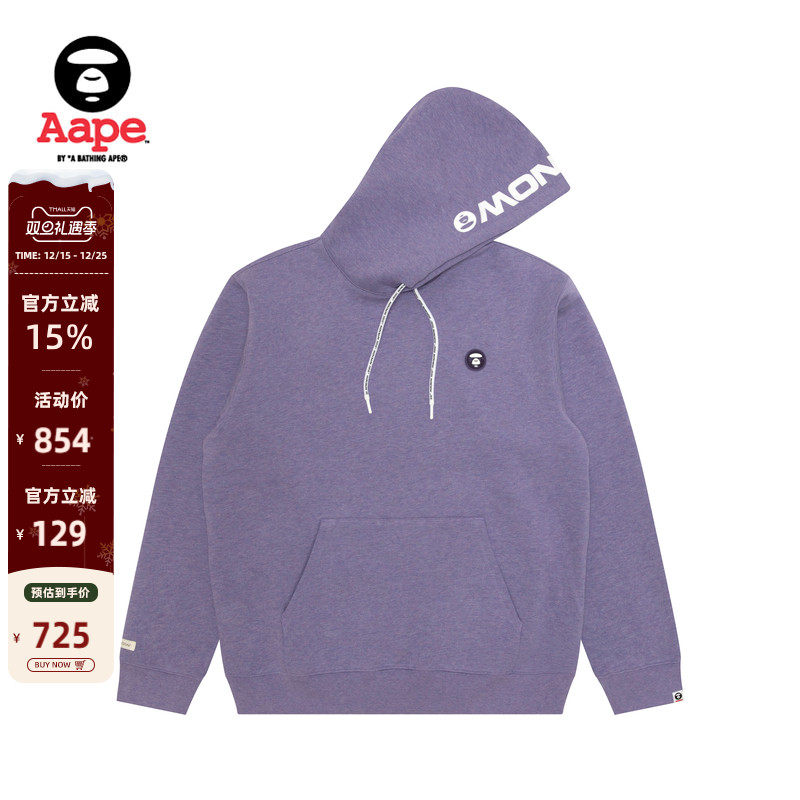 Aape旗舰店男装秋冬小标徽章简约潮流休闲薄绒连帽卫衣C354XBP