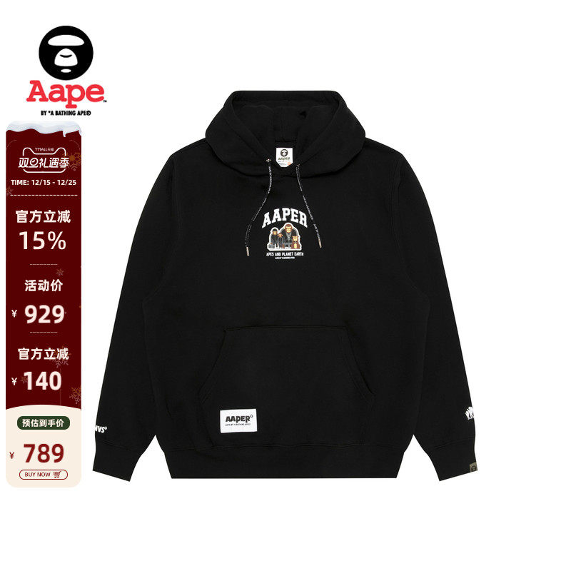 Aape旗舰店男装秋冬猿人字母印花休闲薄绒连帽卫衣D312XXP