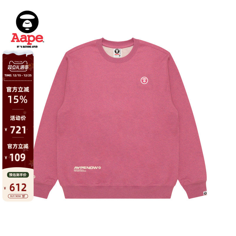 Aape旗舰店男装秋冬小标徽章简约休闲薄绒红色圆领卫衣C349XXP