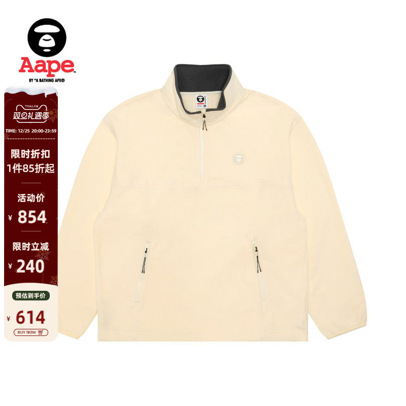 Aape旗舰店男装秋冬小标徽章摇粒绒简约潮流半拉链卫衣C363XXP