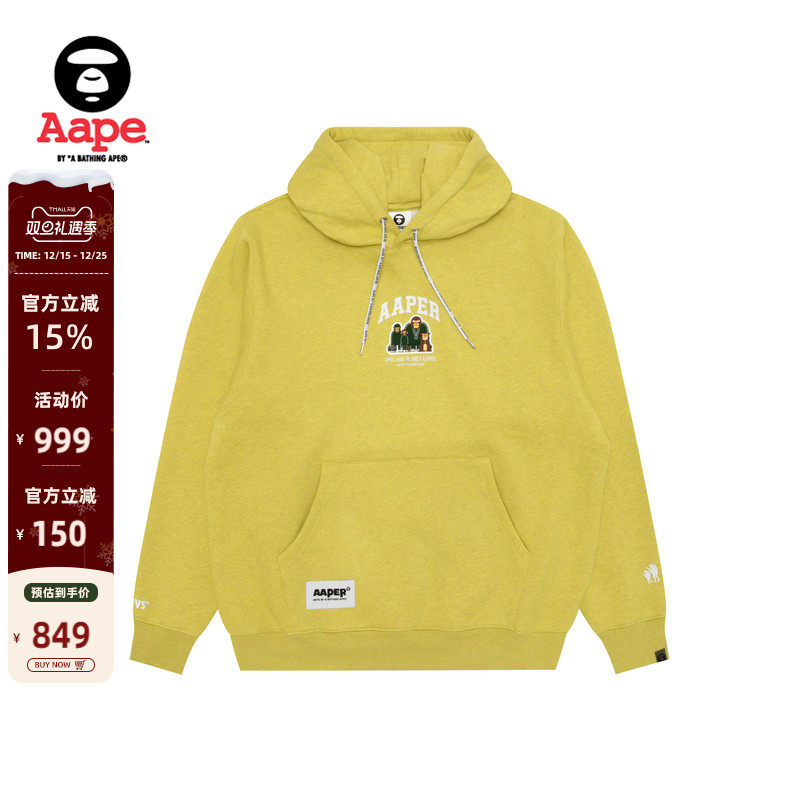 Aape旗舰店男装秋冬校园猿人毛巾徽章休闲潮流连帽卫衣C386XXP