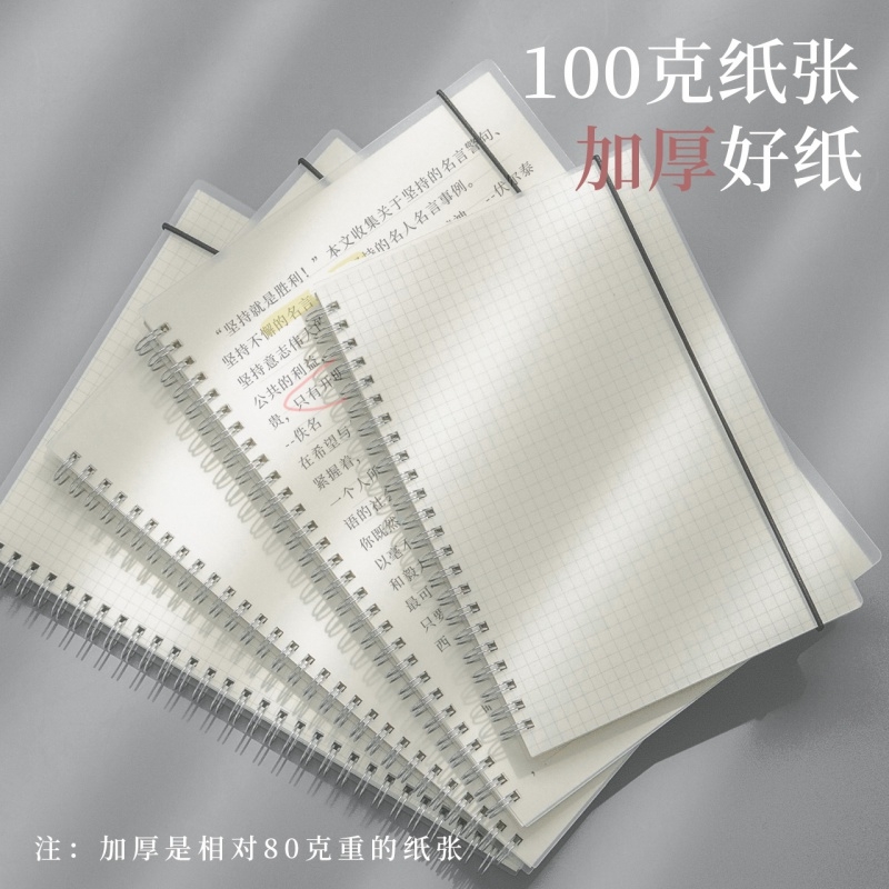 恒品文创 B5A5创意简约透明PP抽杆活页本不硌手可拆卸线圈本ins硬面抄通用26孔方格英语横线笔记本子活页替芯