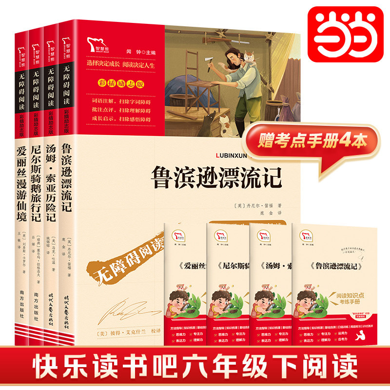 2025快乐读书吧六年级下册必读课外书全4册鲁滨逊漂流记尼尔斯骑鹅旅行记汤姆索亚历险记爱丽丝漫游奇境记小学生阅读书籍老师推荐