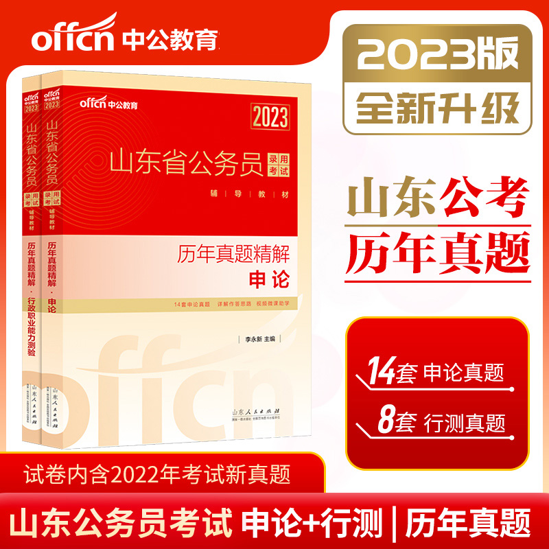 【中公教育】山东公务员考试2023山东省公务员考试用书2本套申论行测历年真题试卷 2022年山东省考行政职业能力测验题库考试题资料