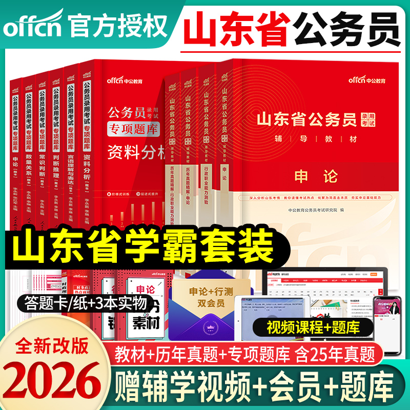 山东省考历年真题试卷中公教育2026年山东省公务员考试用书真题卷子套卷行测和申论教材模拟考公刷题资料库公考2025山东公务员省考