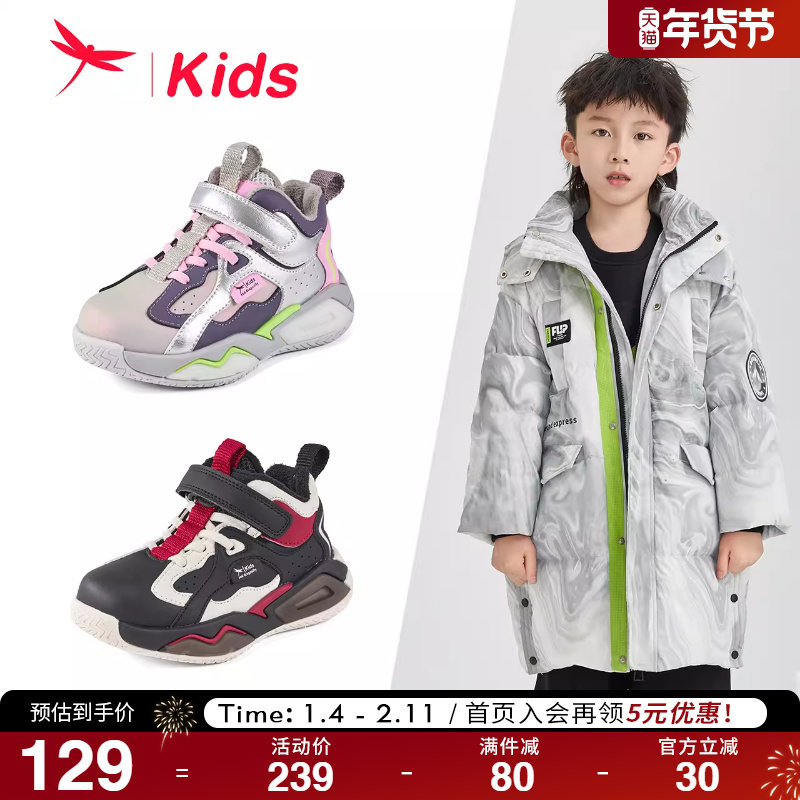 儿童运动鞋2025秋冬季新款男童潮牌篮球鞋高帮板鞋女童加绒鞋宝宝