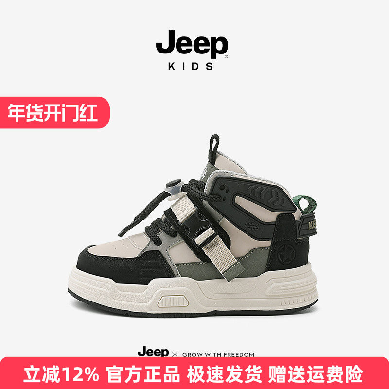 Jeep儿童高帮休闲运动板鞋篮球鞋2025年秋冬季新款软底男女童鞋子