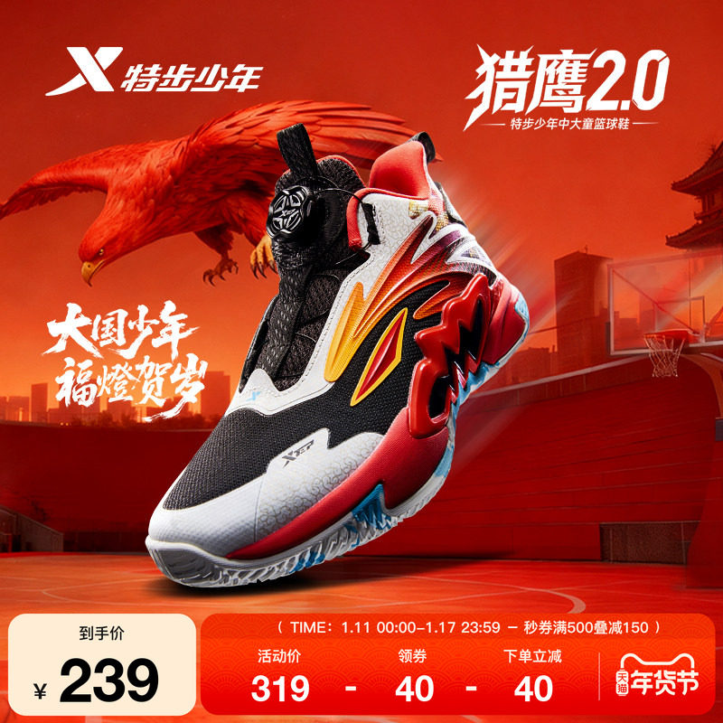 特步童鞋儿童篮球鞋男童秋冬季新款缓震耐磨高帮中大童学生篮球鞋