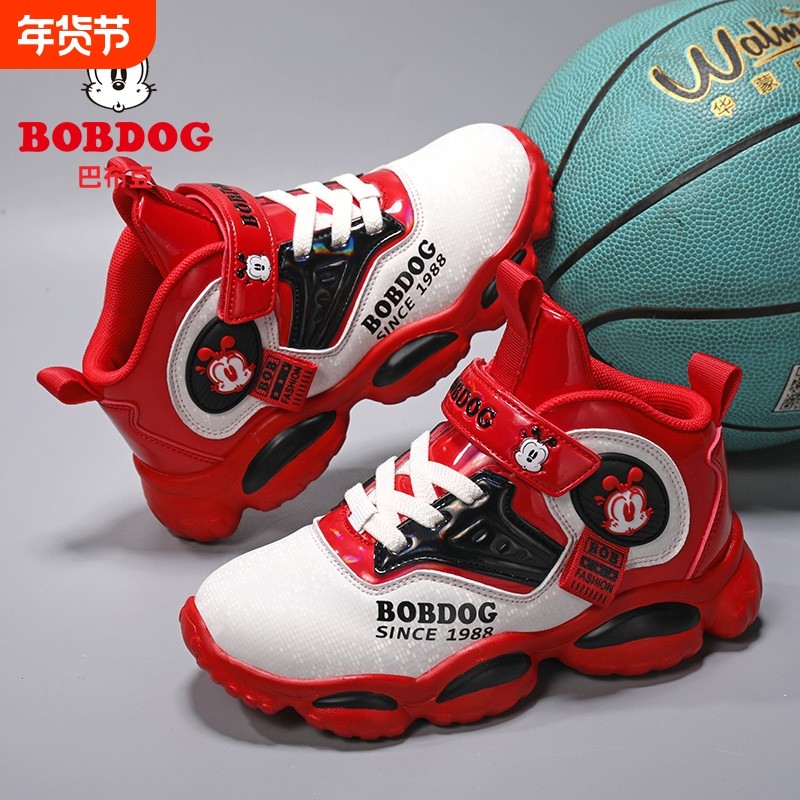 巴布豆儿童篮球鞋男童运动鞋高帮皮面防水秋冬季2025年新款青少年