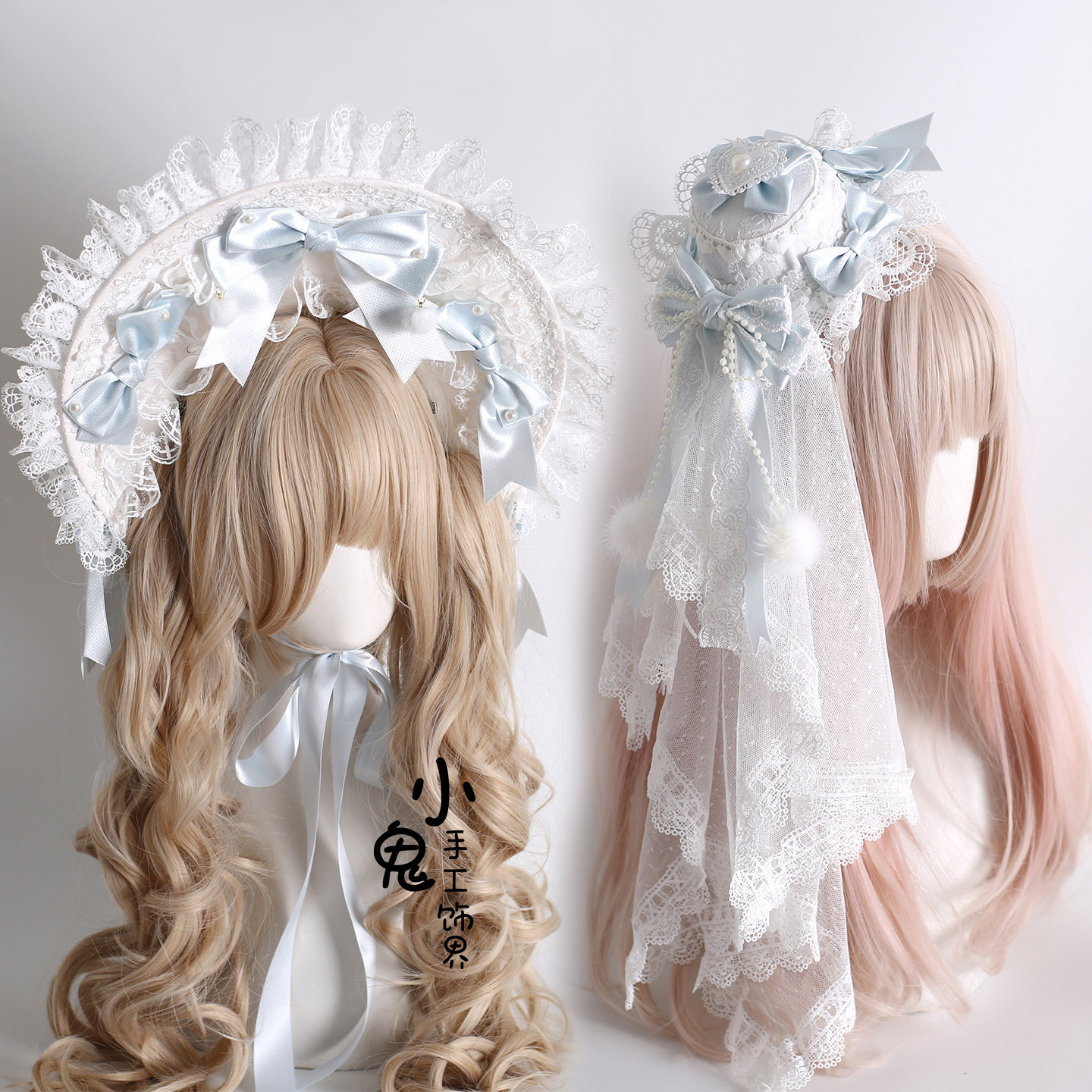 原创圣诞H白蓝Lolita波奈特蕾丝发带洛丽塔小礼帽花丸兔耳发箍KC