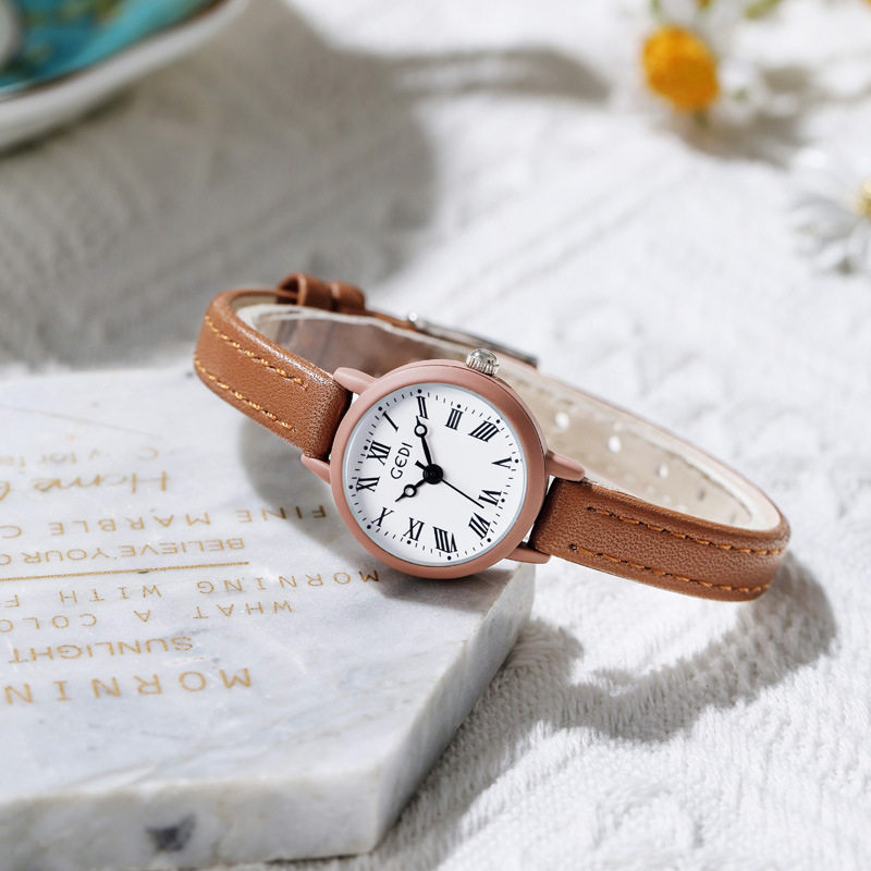 歌迪复古简约小巧精致石英表女生中学生皮带韩版潮流时尚防水腕表