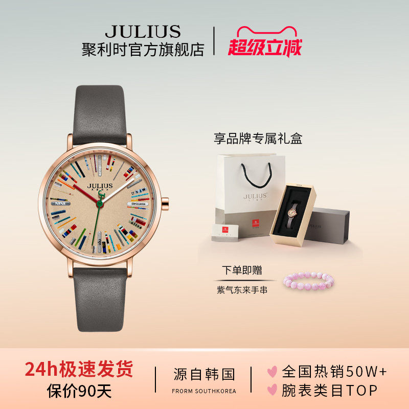 聚利时韩版时尚创意双J旋转秒盘女生防水复古石英学生手表1367