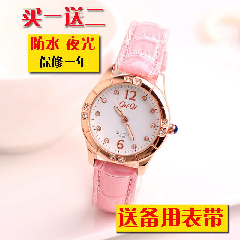 可爱时尚夜光中学生手表女水钻皮带防水儿童女生时装韩版简约潮流