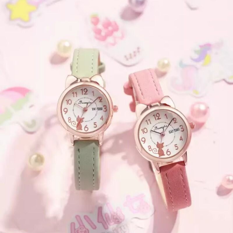 儿童手表女孩防水小学生初中女生韩版简约可爱萌猫女童电子石英表