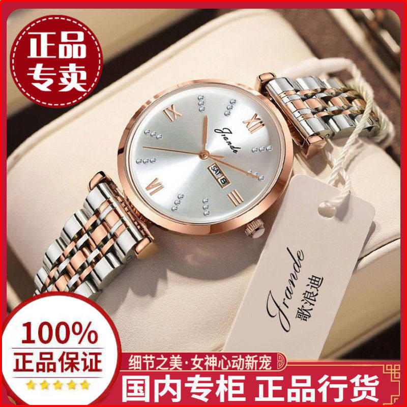 2026年新款正品时尚女生手表女双日历防水钻女士韩版简约气质女表