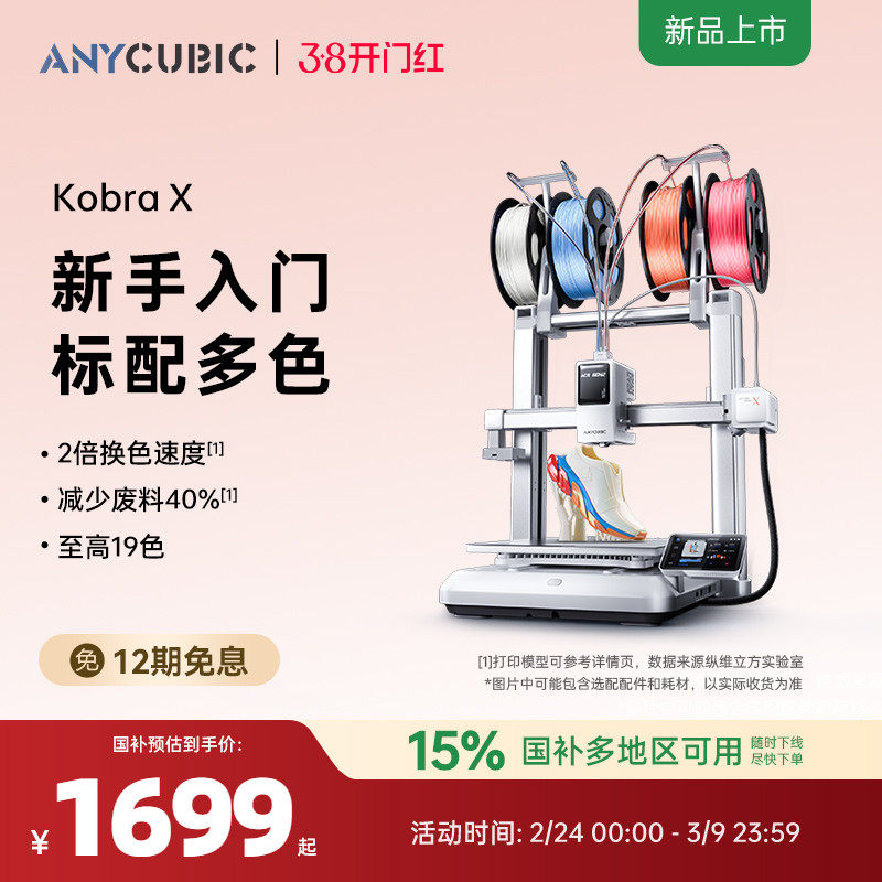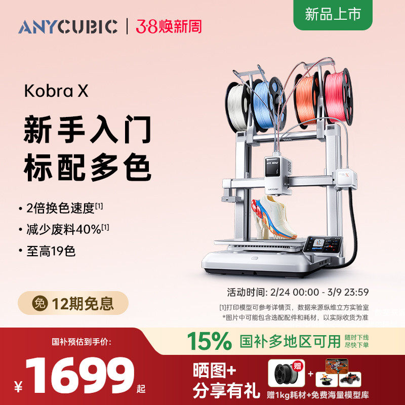 【重磅新品】纵维立方KX多色3D打印机Kobra X天生四色FDM高速桌面级三d立体打印机家用儿童模型diy手办