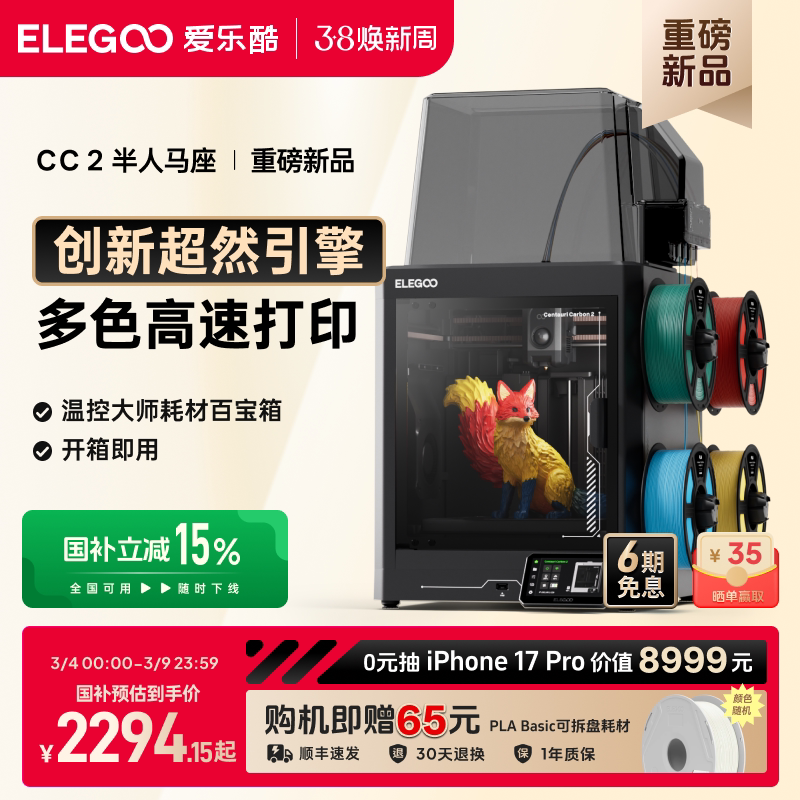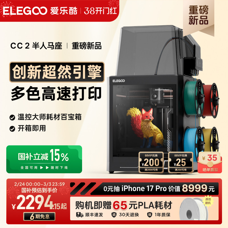ELEGOO/爱乐酷CC2多色3d打印机家用开箱即用全自动调平高速打印家用立体桌面级高精度3d立体打印机机器