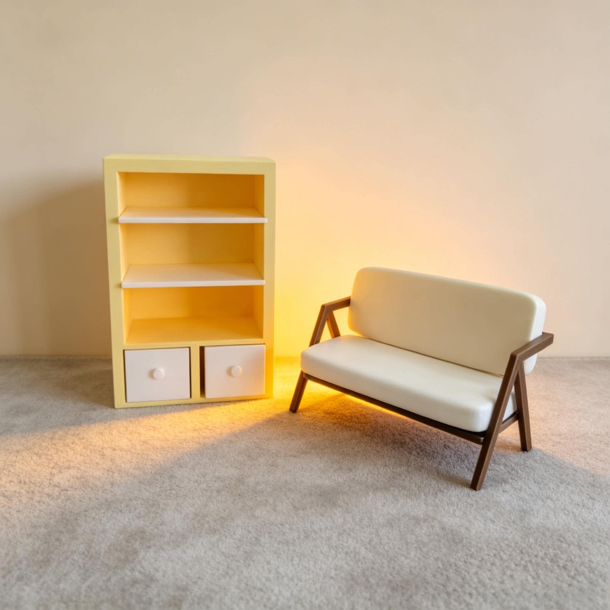 3D 打印 现代迷你家具 可抽拉柜子+现代沙发椅模型 家居小屋布景