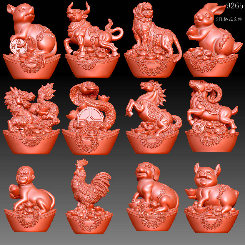 9265元宝生肖圆雕图stl文件三维立体图 3d 打印模型文件