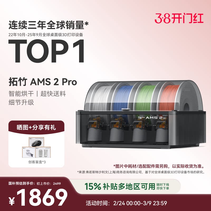 拓竹AMS 2 Pro 3D打印机自动供料系统 家用智能多色多材料 升级烘干新品 【大陆版】