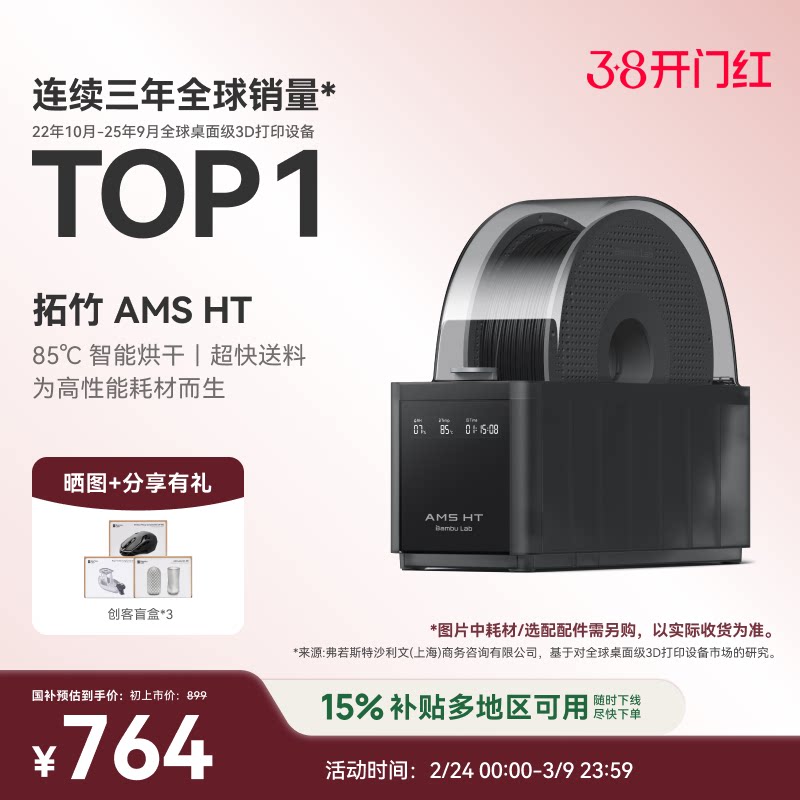 拓竹AMS HT 3D打印机自动供料系统 家用智能 升级烘干新品 【大陆版】