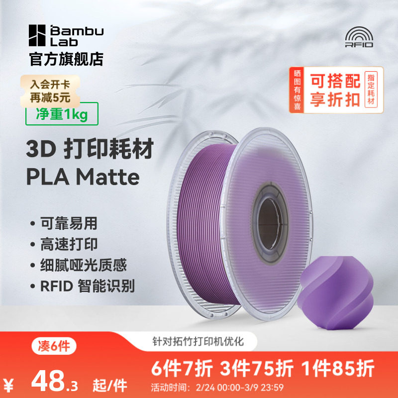 拓竹PLA Matte哑光 3D打印耗材 高韧性易剥离高速易打印 RFID智能参数识别