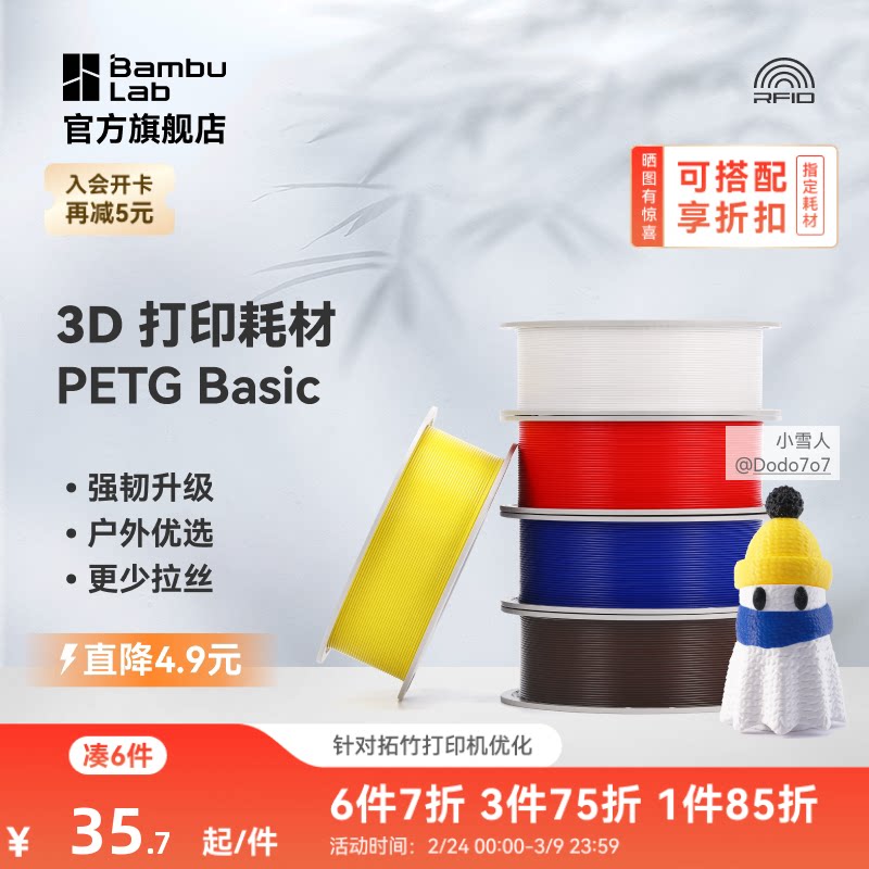 【2025新版】 拓竹 基础PETG Basic 3D打印耗材 强韧升级 户外优选 更少拉丝 耐摔耐水耐候 RFID智能识别
