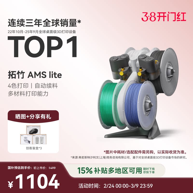 拓竹AMS Lite 3D打印机自动供料系统 家用智能 多彩多材料打印 自动续料 【大陆版】