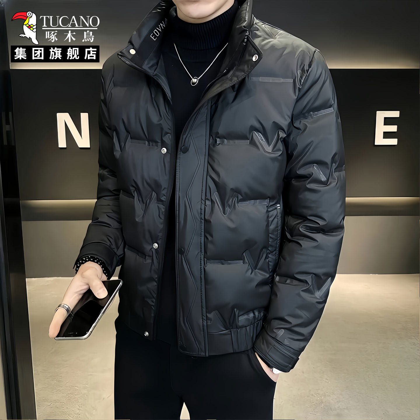 啄木鸟冬季男士轻薄羽绒棉服保暖休闲立领潮流帅棉衣外套防寒服XN