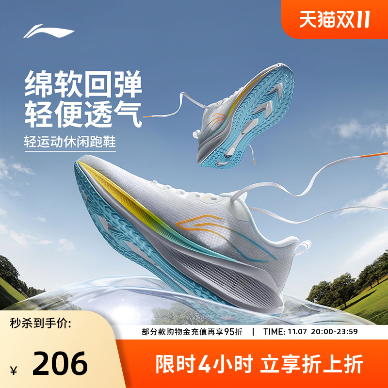 李宁跑步鞋 吾跃 男女款透气软底舒适防滑缓震回弹休闲运动慢跑鞋