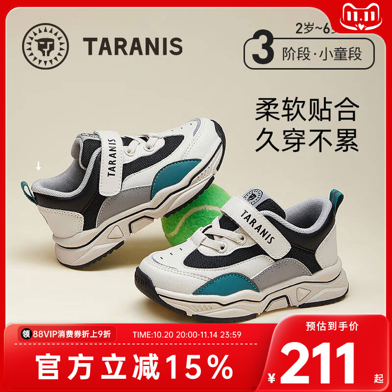 泰兰尼斯春秋男童轻便跑步鞋透气女童运动鞋儿童校园防滑老爹鞋子