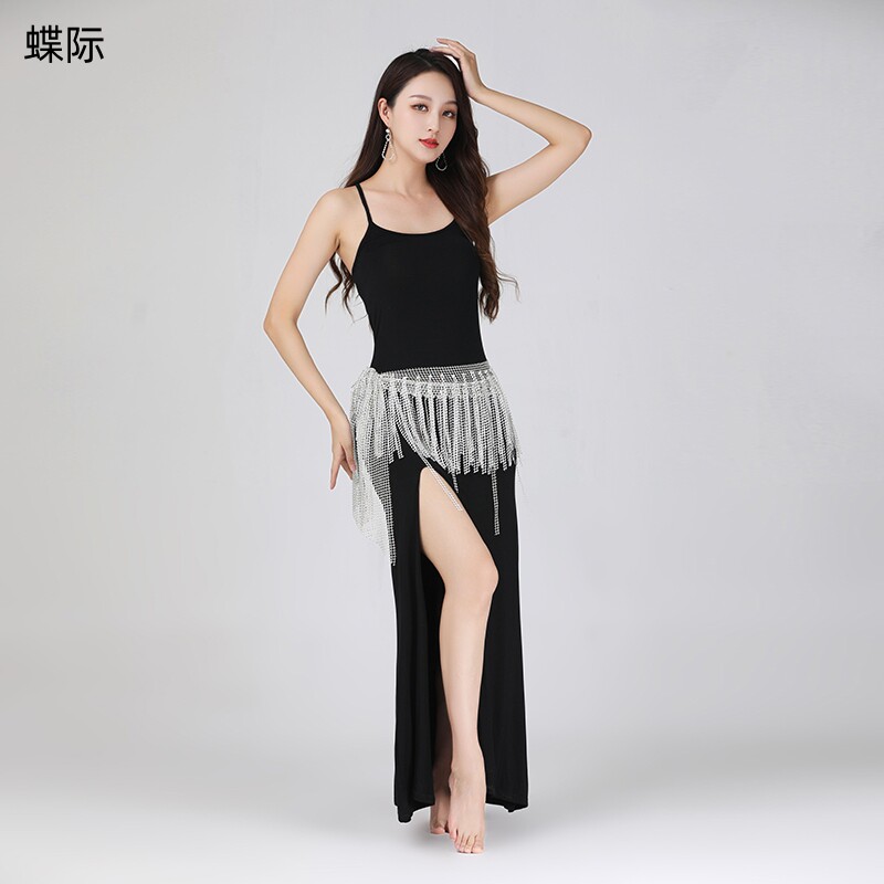 新款秋冬肚皮舞练功服套装大码显瘦莫代尔东方蹈练习演出表开叉裙