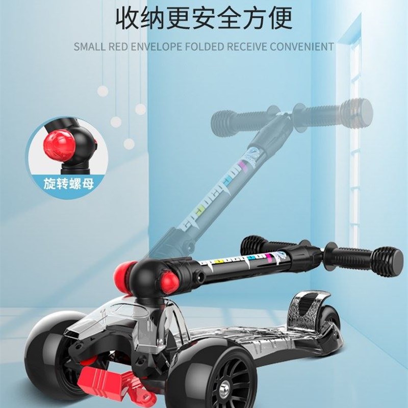 极速滑板车儿童四轮初学者男孩女孩1-2-3-N6岁划板车可升降闪光可