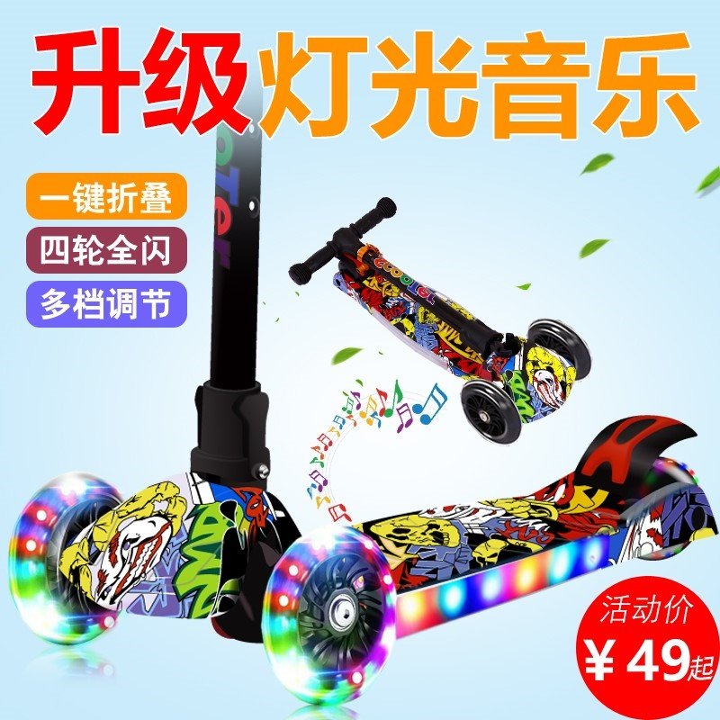 音乐滑板车 2岁儿童女6岁宝宝闪光8岁小孩滑滑车初学者脚踏划板车
