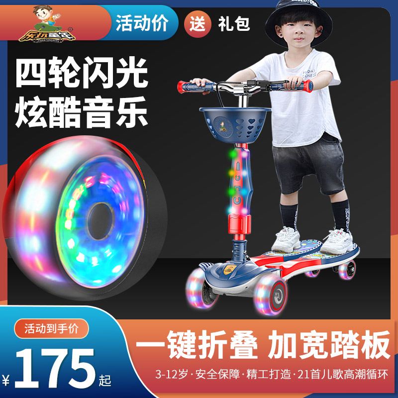 划板车儿童滑板车3岁女孩六至十二岁七岁以上滑行四轮折叠1一q2岁