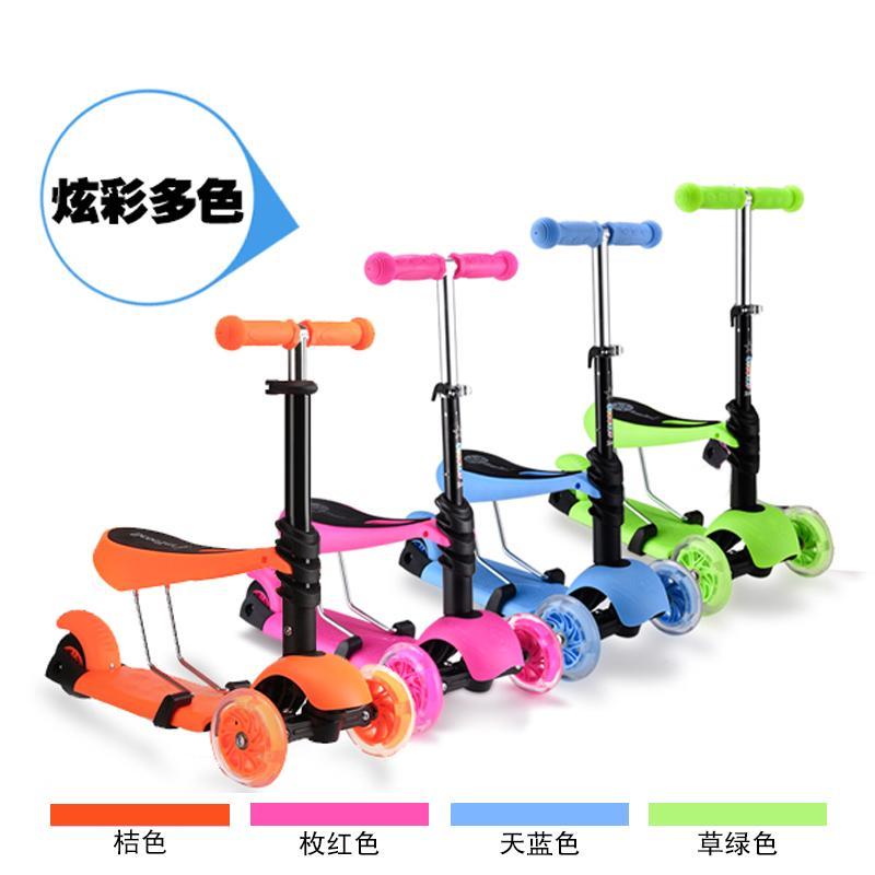 儿童滑板车3轮闪光可坐 三合一宝宝滑滑车划板车摇摆车2-3-5岁